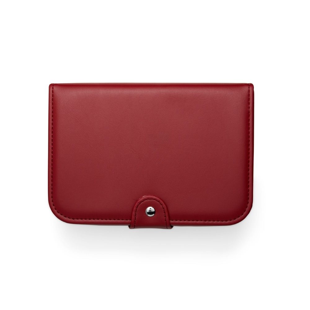 Porta-joias em couro sintético com revestimento aveludado e espelho. Possui compartimentos internos para anéis, pulseiras, colares e placas para brincos.