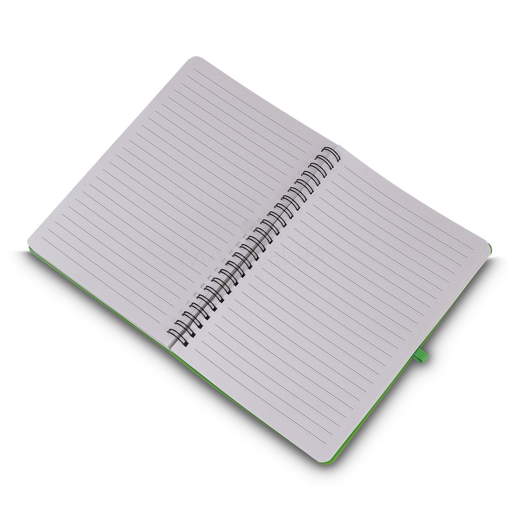 Caderno de anotações em PP(Polipropileno) reciclável com suporte para caneta e miolo de 70 folhas brancas pautadas. *Não acompanha caneta.