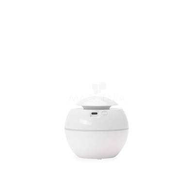 Umidificador de ar com construção em plástico, iluminação LED e reservatório de água com capacidade de até 200ml. Apresenta dois modos de névoa: contínuo e intermitente. Funciona apenas conectado a uma fonte de energia por meio de sua entrada USB-C. Acompanha filtro de algodão e cabo USB-C.