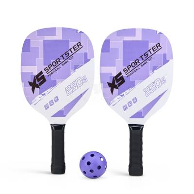 Kit Pickleball composto por 2 raquetes de madeira (sendo uma face personalizada e outra lisa), além de grip composto em fibras de carbono e vidro. Acompanha 1 bola plástica com 26 furos e um saco telado para transporte.